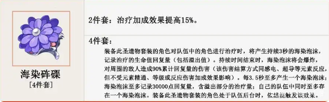 海染砗磲4件套:提升七七的治疗量,当恢复生命值时,还造成治疗量90%物理伤害,额外提升了七七的输出能力。
