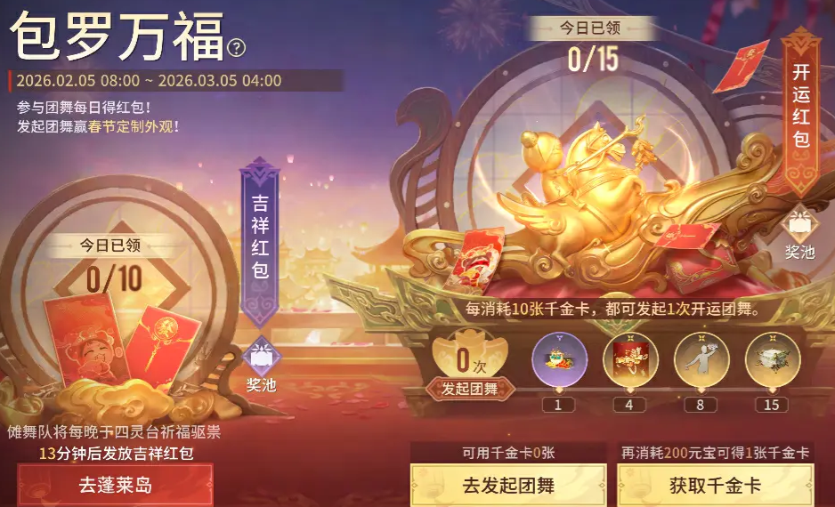 “包罗万福”活动设于蓬莱岛场景,以红包交互为核心:包含“开运红包雨”与“吉祥红包雨”两种形式,活动界面明确公示发放时段,建议玩家提前进入地图等待领取。同期开放的官方商城充值返利活动中,所有档位均享1.6倍元宝返还,部分高阶档位叠加额外加成;需注意返利元宝须在有效期内绑定至角色,逾期将自动清零。