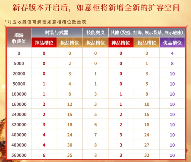 系统功能方面,本次更新同步拓展衣柜展位容量,扩展规则与玩家当前收藏值挂钩:每单位收藏值对应固定展位增量,且不同稀有度展位所需收藏值呈阶梯式递增。武器外观新增链剑神品级“断昼吟”,整体造型融合暗夜美学与东方意象,目前仅可通过神佑宝灯概率获取,具备稀缺性特征。