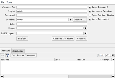3、在登陆到路由器后可以通过Winbox控制台操作MikroTik路由器的配置并执行与本地控制台同样的任务 。