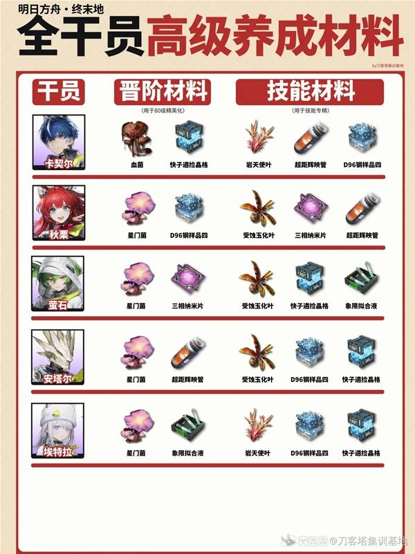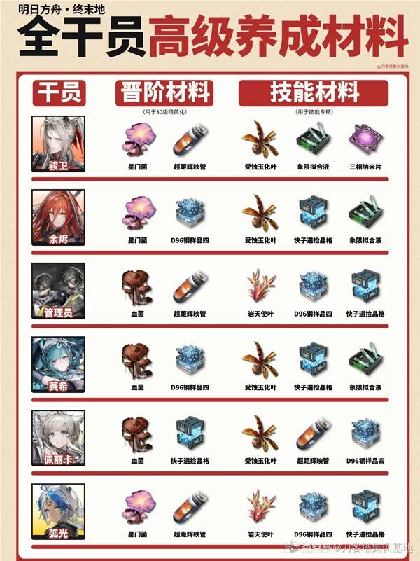 明日方舟终末地全干员高级材料需求表