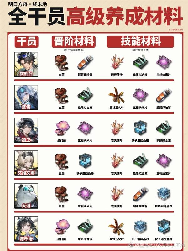 明日方舟终末地全干员高级材料需求表一览