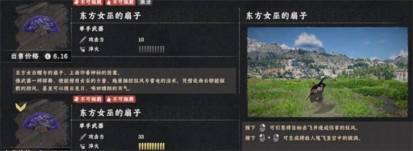东方女巫的扇子是特殊装备,在背包中选择【使用】后,需要在武器轮盘中切换才能真正装备并使用。使用后有10分钟冷却时间。