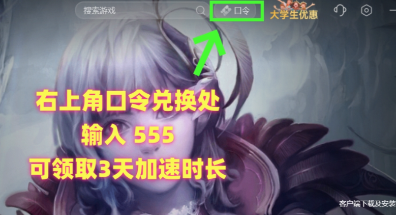 新用户可在兑换窗口输入【555】领取3天免费加速时长。进入游戏前选择对应区服进行网络优化,显著提升连接稳定性。