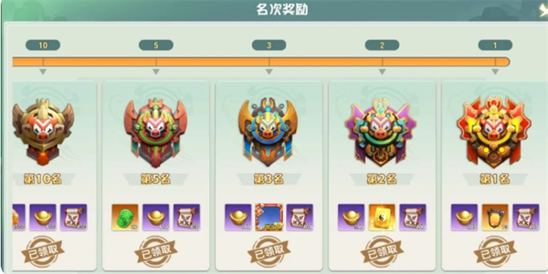 ② 一次性排名奖励:达成指定排名可领取一次,不可重复领取。