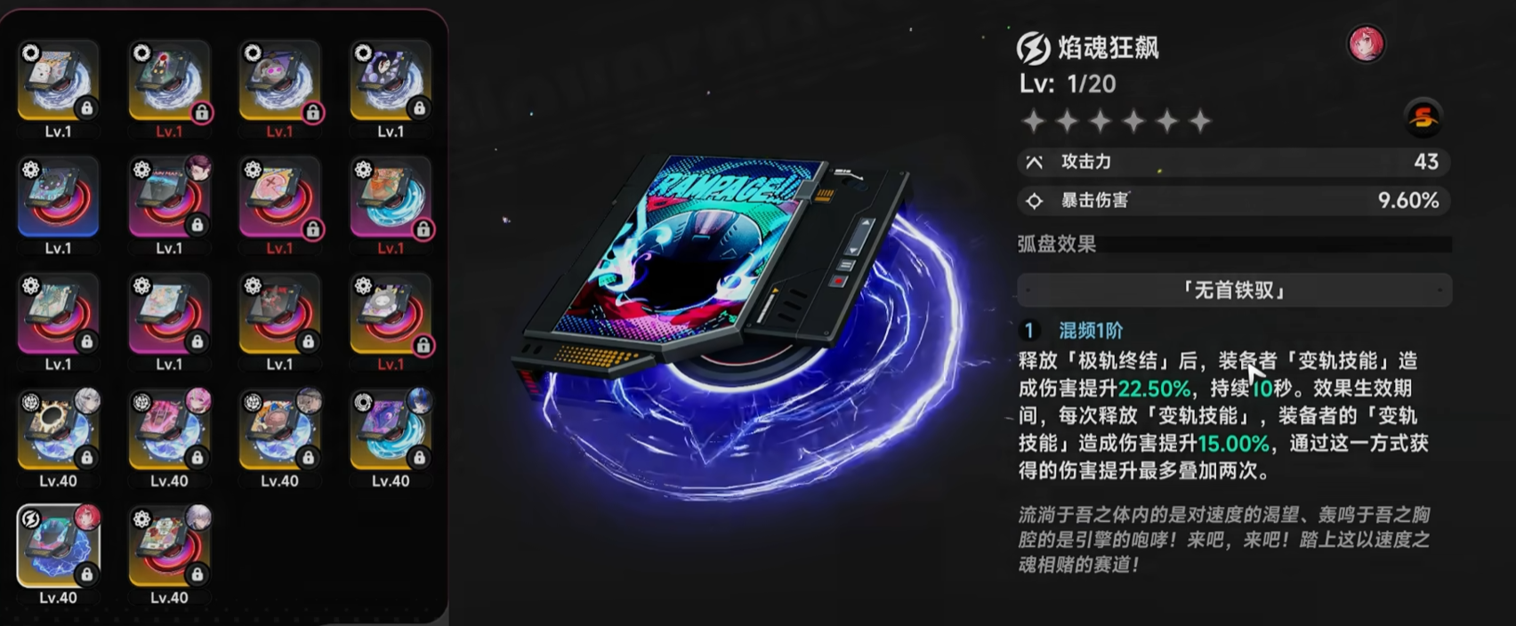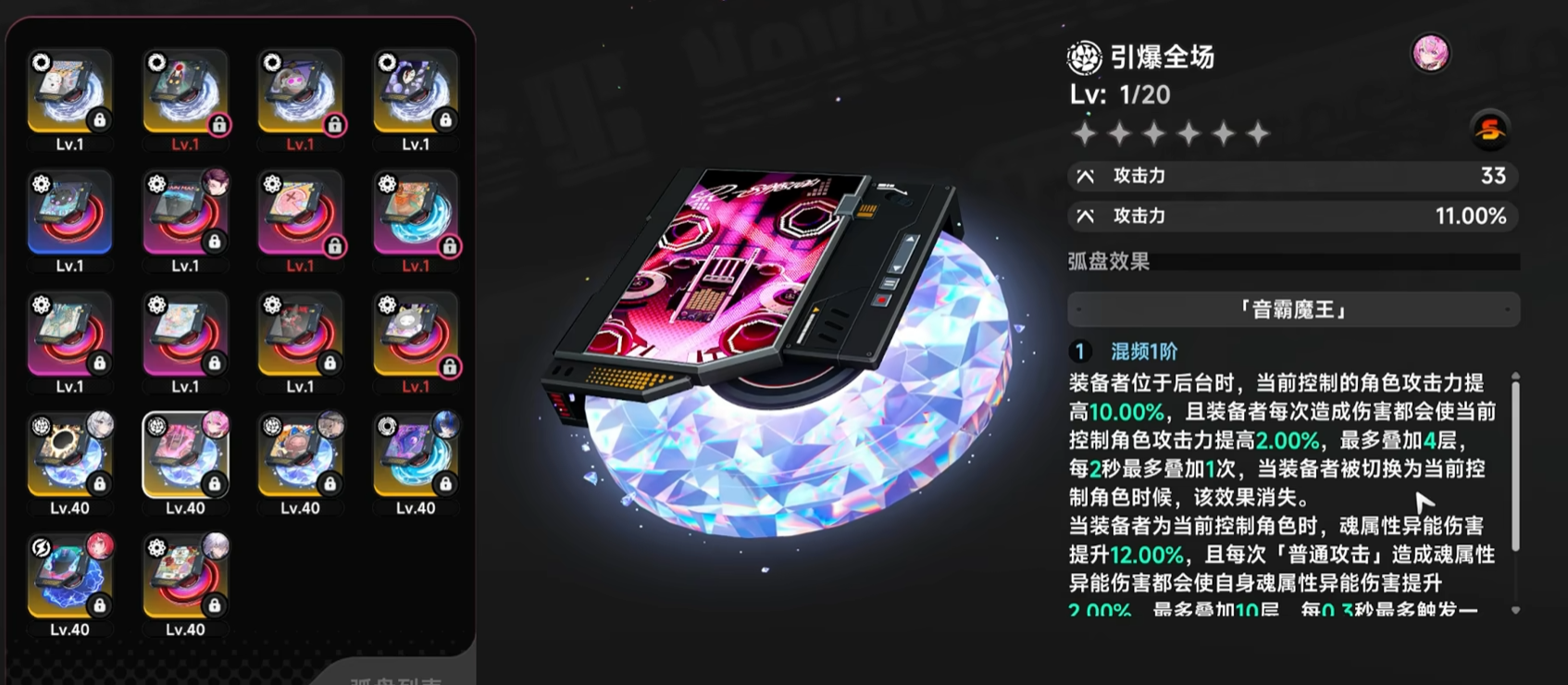 “引爆全场”弧盘则专为能量循环型队伍设计。装备者处于后台时,每3秒自动获取32点原质驱力,最多累计6层;一旦切换至前台或再次返回后台,层数重置。该机制倒逼玩家主动进行角色轮换,形成“后台蓄能—前台输出—再切后台”的战术循环,既保障了技能释放频率,也提升了整支队伍的能量稳定性,广泛应用于依赖多段技能连携与驱力管理的战术体系中。