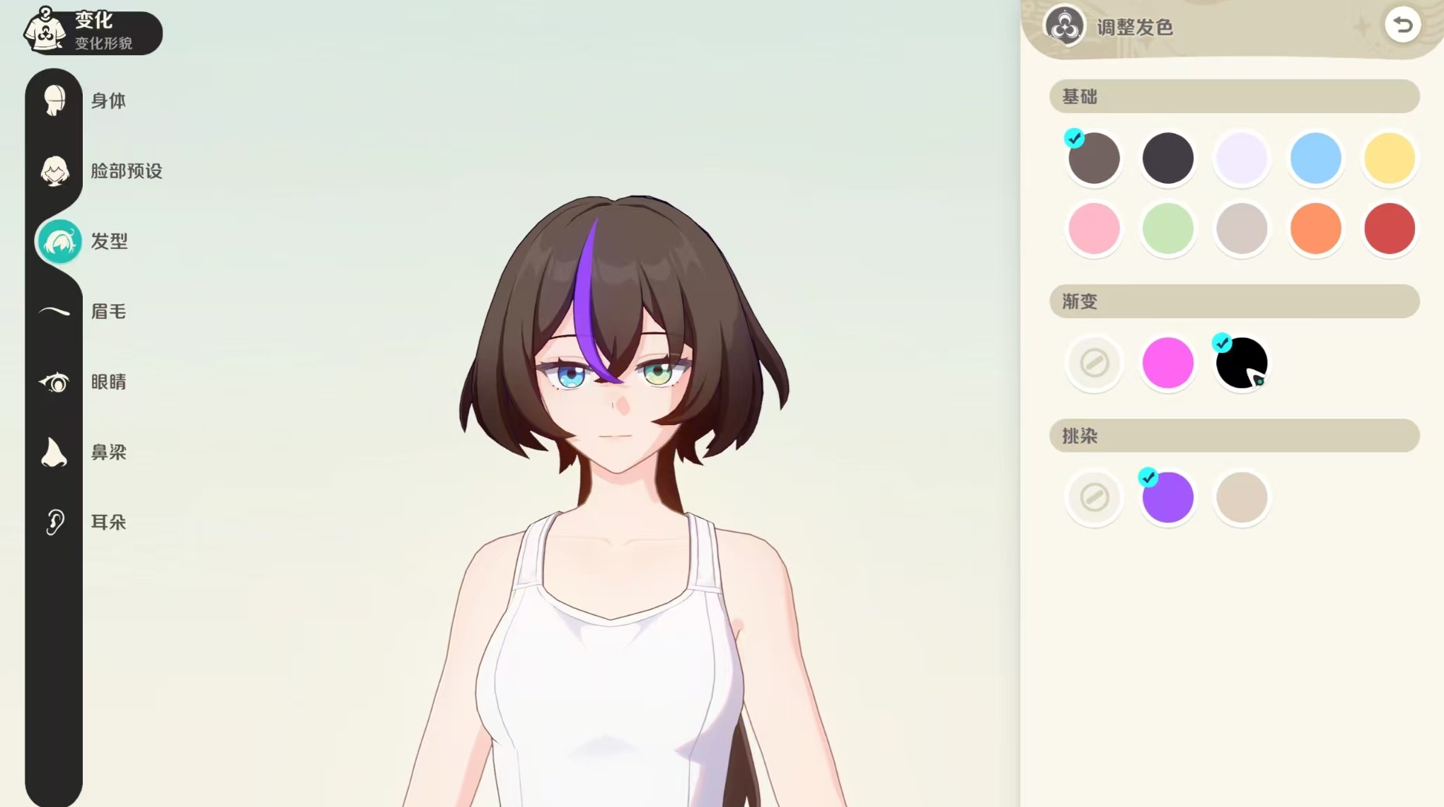 玩家在进入游戏初期,可通过界面左上角的交互区域找到四个从左至右排列的变化按钮,点击即可进入角色外观定制界面。该系统提供了极为全面的调节选项,涵盖身体形态与面部特征的预设方案,同时支持对发型、眉形、眼型、鼻梁轮廓、耳部细节以及服装搭配进行精细调整。不仅如此,发色、瞳孔颜色、挑染效果乃至异色瞳等进阶设定均可自定义,甚至连角色说话时的口型变化也能精准调控,确保每位玩家都能塑造出独一无二的二次元形象。