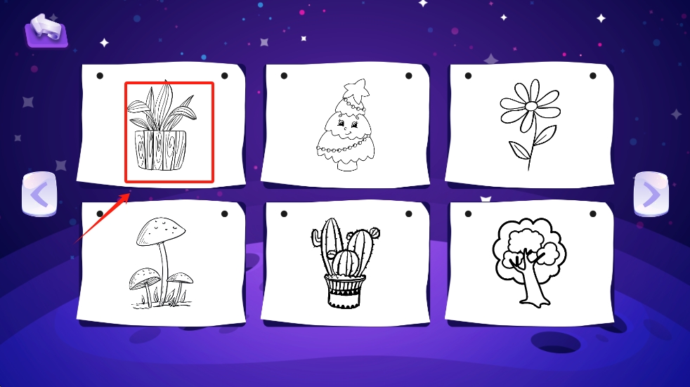 1、缤纷多彩的图案库:内置数百张精心设计的卡通形象、动物、植物等涂色模板,画面简洁可爱,符合低龄儿童的审美偏好。