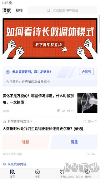 果壳app是一个面向年轻人的知识分享社区,在这里用户可以探索各种有趣的冷知识和新鲜事,从日常生活中的小窍门到宇宙奥秘都能找到。平台每天持续更新大量科普内容,帮你解答生活中遇到的各类疑问。为了提升用户体验,App内特别设置了视频专区,相比纯文字说明,视频讲解更加生动直观,让不同偏好的用户都能获得满意的学习方式。