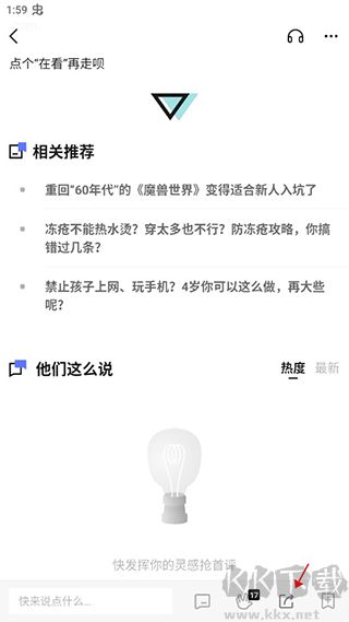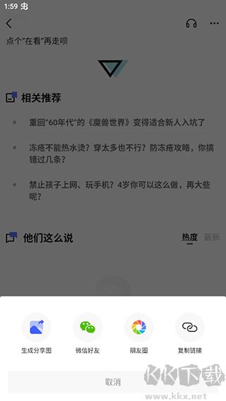 2、在文章的最下方点击分享选项。