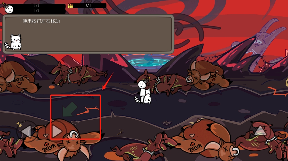 2、使用箭头按钮移动角色,控制角色在游戏世界中左右移动,探索不同的场景。