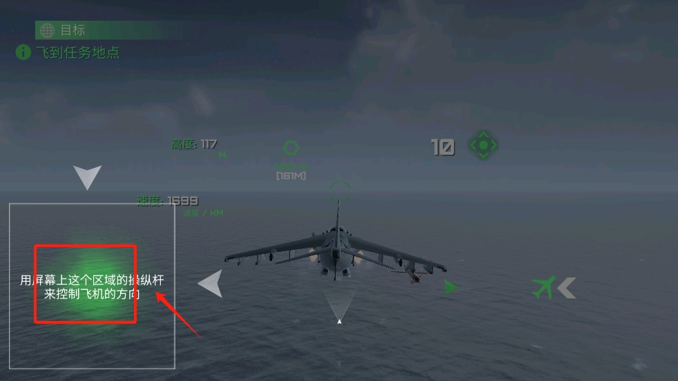 1、点击屏幕上的绿色箭头,进入游戏准备起飞。