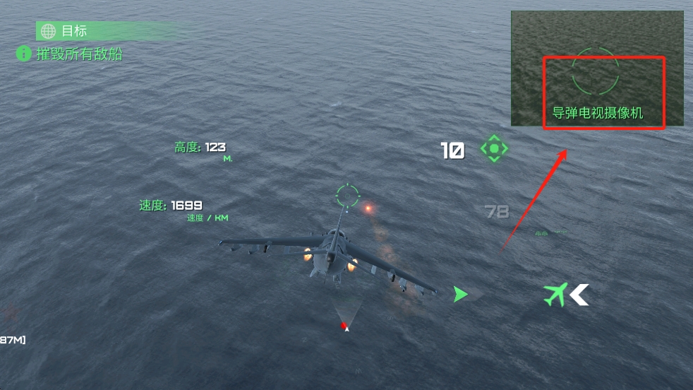 3、利用右上角的导弹电视摄像机,瞄准并攻击目标完成任务。