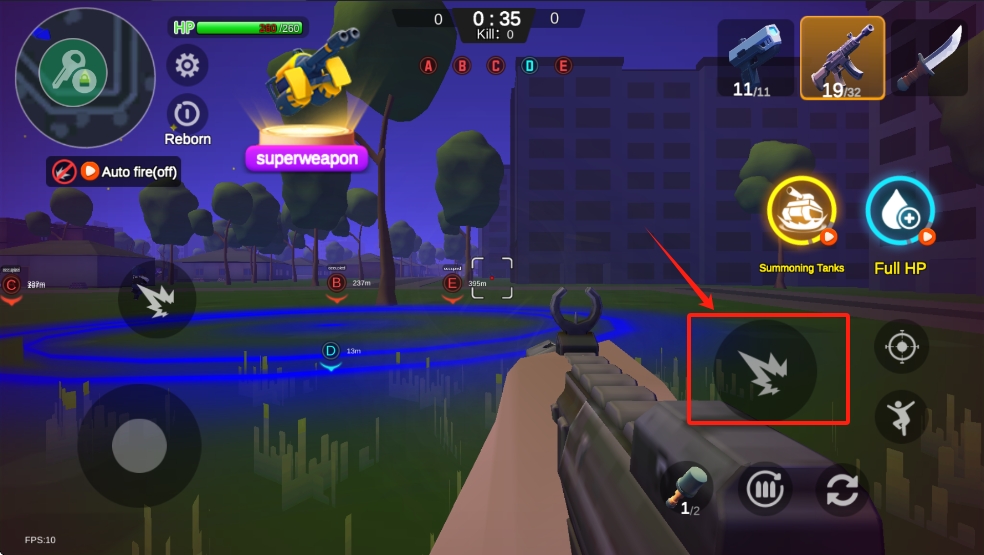 3、进入游戏后,点击屏幕右侧的射击按钮,瞄准目标进行攻击。
