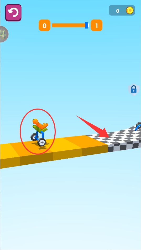 3、比赛时点击屏幕控制单车加速前进,灵活避开赛道障碍,率先冲过终点线即可赢得关卡胜利。