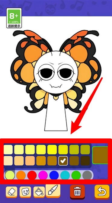 1.点击下方调色盘选择喜欢的颜色进行上色,打造专属角色形象。