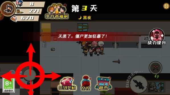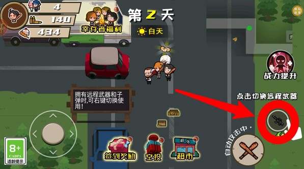 1.点击画面右侧切换远程武器,提高攻击效率和生存几率,关键时刻超有用。