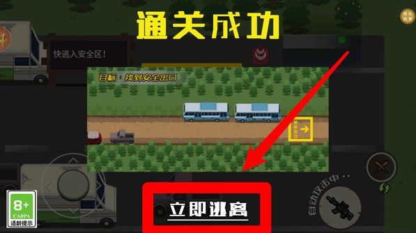 3.通关成功后点击“立即逃离”按钮迅速进入下一个关卡继续冒险求生。