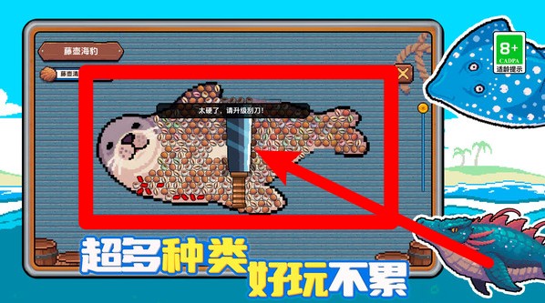 3.观察海豹鳞片,初级刮刀切割顺畅,升级更锋利的刀提高效率。
