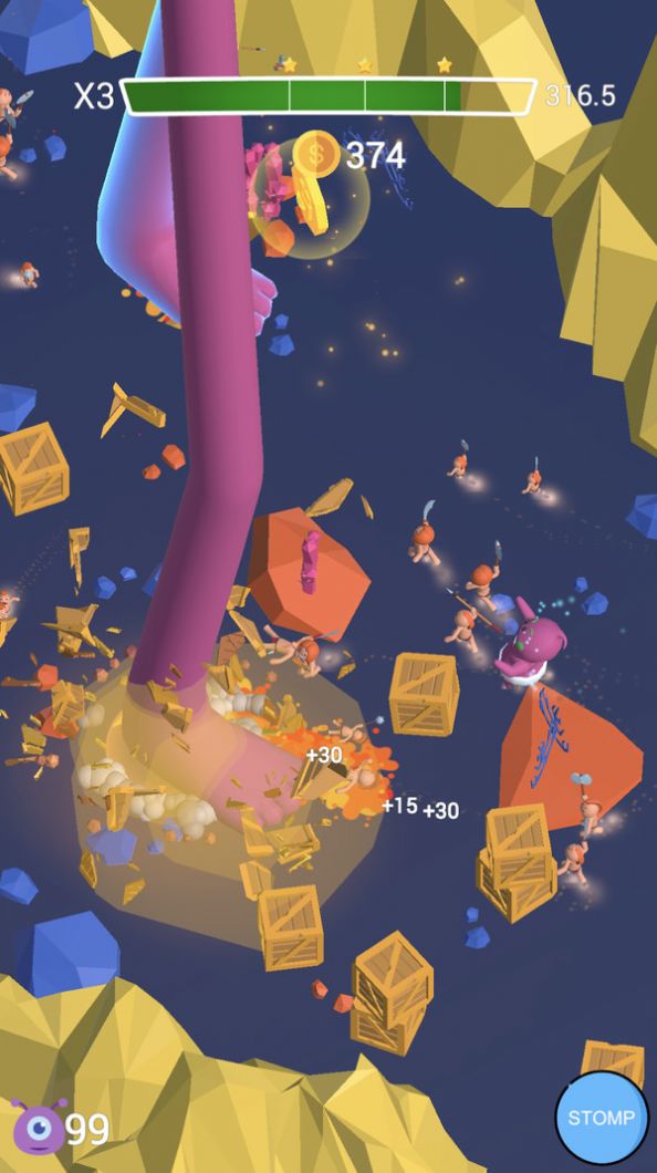 1. 独特的操控:玩家可以通过点击屏幕,控制大脚怪跳跃、踩踏和破坏。
