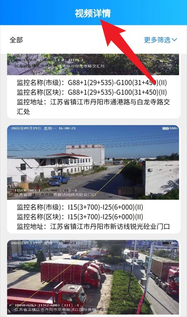 2、成功登录后可进入“视频详情”页面,查看各个监控点位的实时画面与历史视频记录信息。