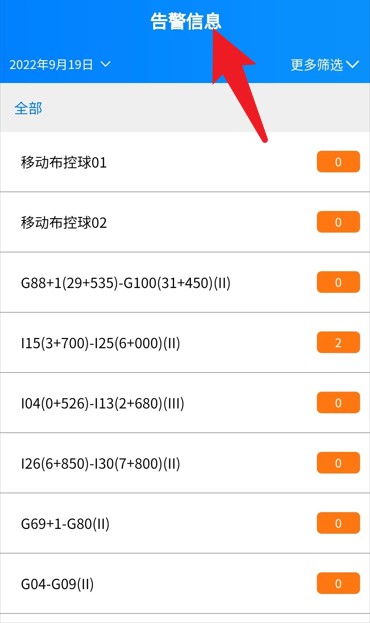 3、在“告警信息”页面可查看每个监控点的警报记录,支持按时间与监控设备进行筛选统计。