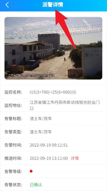 5、进入“派警详情”页面后,可查看具体告警事件的类型、地址、时间与处理状态等详细信息。