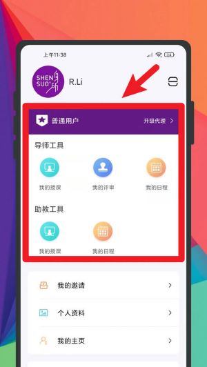 3、登录成功后进入首页,普通用户可查看我的授课、日程、资料等,也可申请升级代理权限。