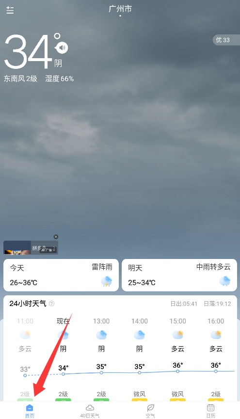 2、主界面会显示实时气象信息,包含温度、湿度、风力等当天完整天气数据。
