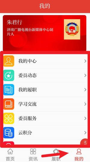 4、进入“我的”页面,可查看个人中心、委员动态、学习交流及云积分等详细信息。