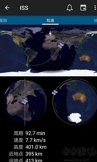 2、可准确预报国际空间站及多数可见卫星的运行轨迹