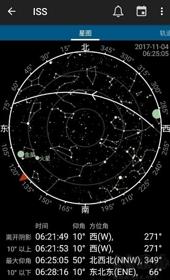 2、借助手机传感器提供实时虚拟星空图,追踪功能直观易用,通过屏幕箭头与路径实时引导用户定位卫星,比平面星图更具互动性和指导性