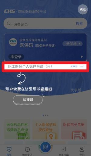 2、账户登录后将自动显示“职工医保个人账户余额”栏目,可随时查看当前医保账户资金情况,方便掌握使用状态。