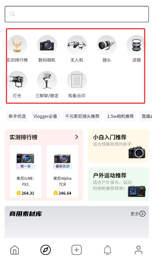 2、在首页动态板块,可浏览关注、推荐及社群发布的摄影器材相关资讯与评测内容。