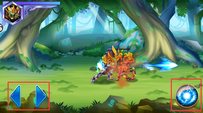 3、通过左侧虚拟方向键控制角色前后移动,右侧技能按键发动专属必杀技攻击敌人。
