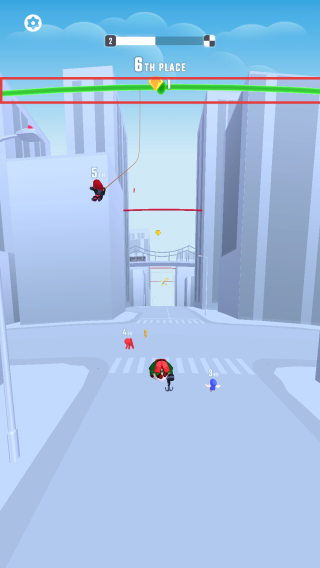 2、在靠近上方横杆时,点击即可释放绳索并钩住横杆。