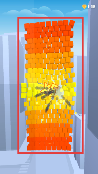 3、到达终点时,控制角色撞击不同颜色的方块可以获得不同倍数的奖励。