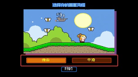 2、在设置菜单中根据个人偏好选择像素风格或平滑渲染模式,两种画风呈现不同视觉效果。