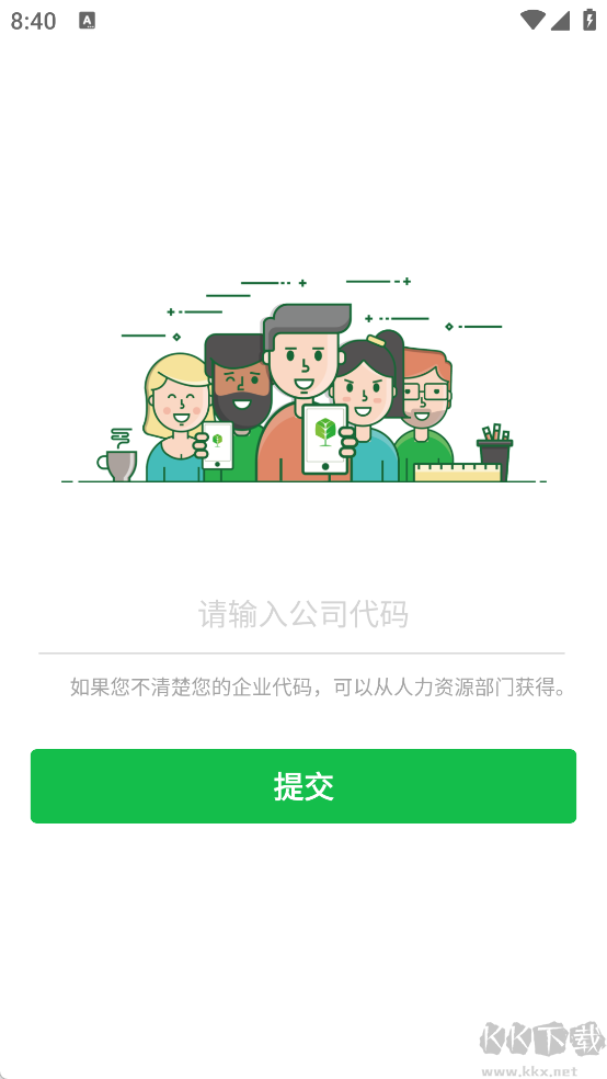 1、输入公司代码进入,【如果您不清楚您的企业代码,可以从人力资源部门获得】