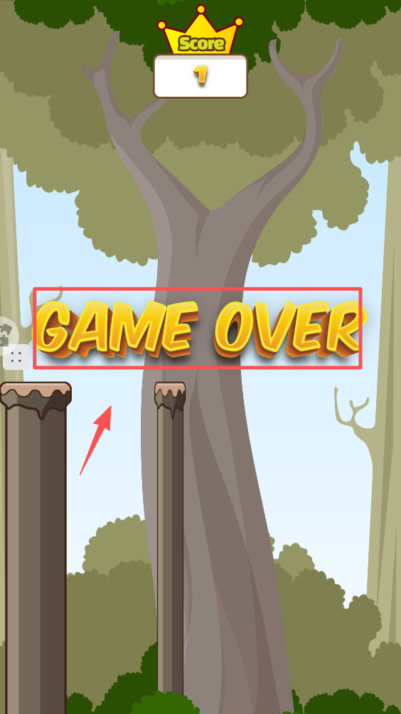 3、一旦小猴未能成功跳跃,游戏结束,此时会显示“GAME OVER”。