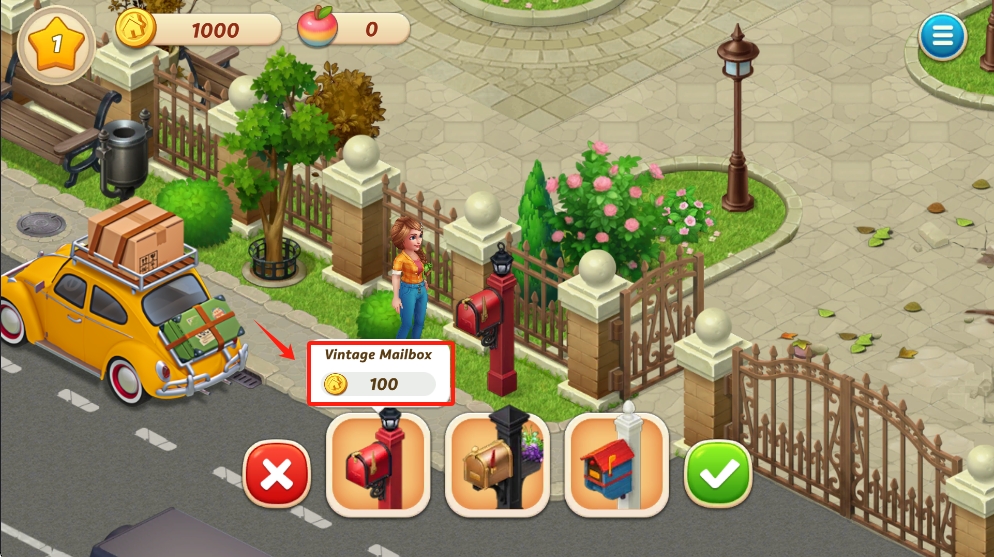 3、点击选择心仪的邮箱样式,点击对勾按钮确认购买并放置。