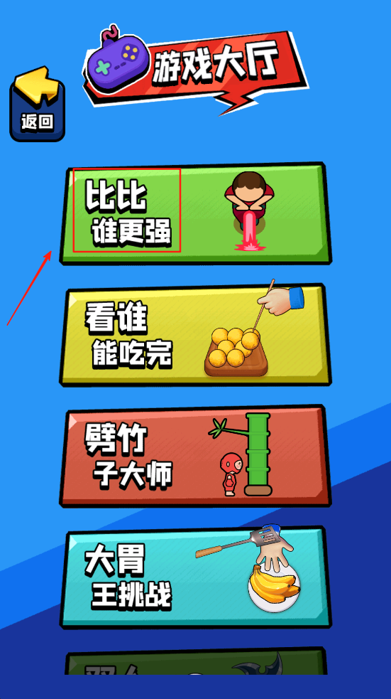 2、在游戏大厅中,选择“比比谁更强”等不同游戏模式进行挑战。