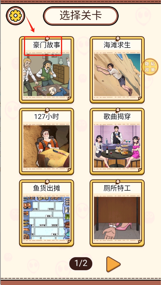 2、点击“豪门故事”进入关卡,选择你想要挑战的关卡。