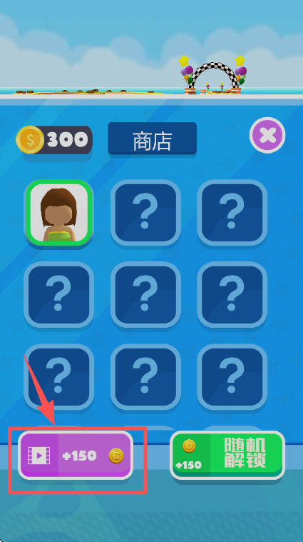 1、在商店界面,点击左下角带影片图标的按钮,观看视频可获得 150 金币,用于解锁角色。