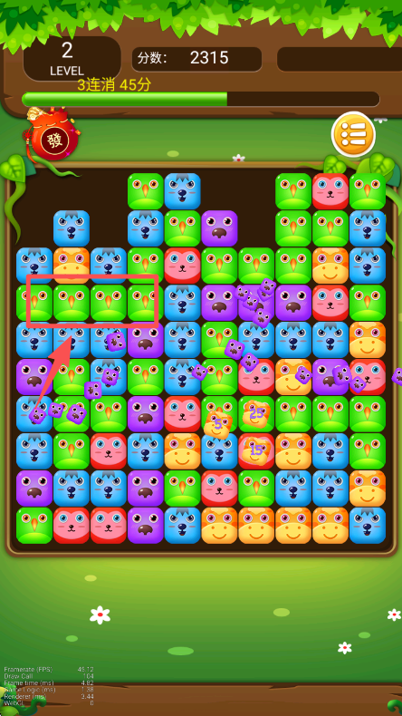 2、消除到一定程度会出现 “奖励分” 提示,获得额外分数后继续推进关卡进度。