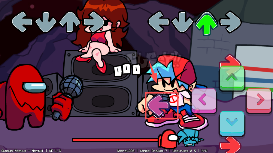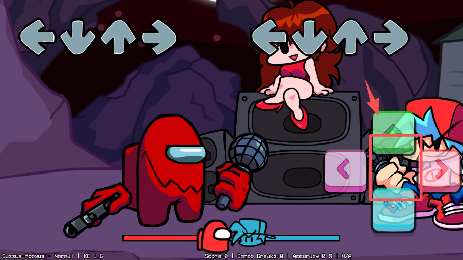 2、观察左侧下落的箭头,在它与左侧按键区域对齐时按下对应键,完成节奏操作。