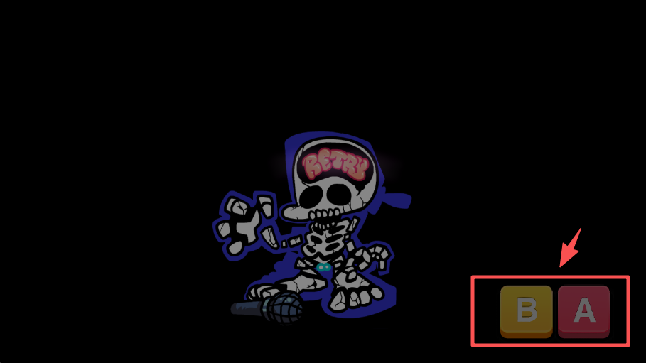 3、若游戏失败出现骷髅界面,按下右侧 B 或 A 键,就能重新开始当前曲目的对局。