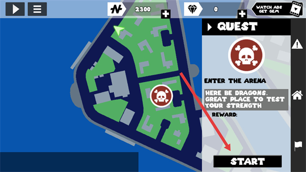 1、进入游戏主界面后,点击右下角的START按钮,进入包含地图的游戏场景。