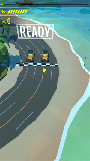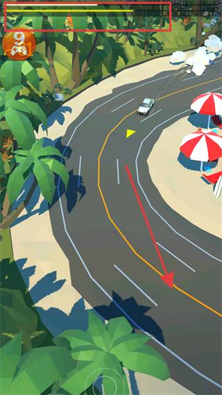 1、在弯道处滑动控制区域,让车辆沿弯道内侧漂移,同时观察上方的进度条(绿色条),保持行驶节奏。