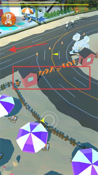 2、遇到路障(如橙色栏杆)时,提前调整车辆方向,从路障的间隙或外侧绕过,避免碰撞减速。